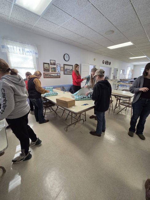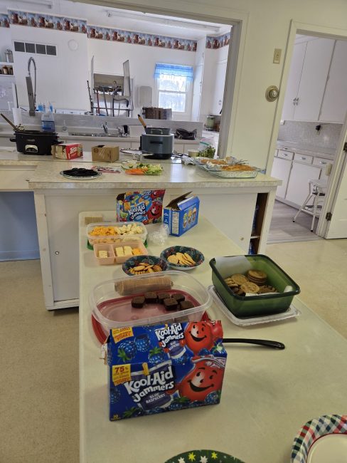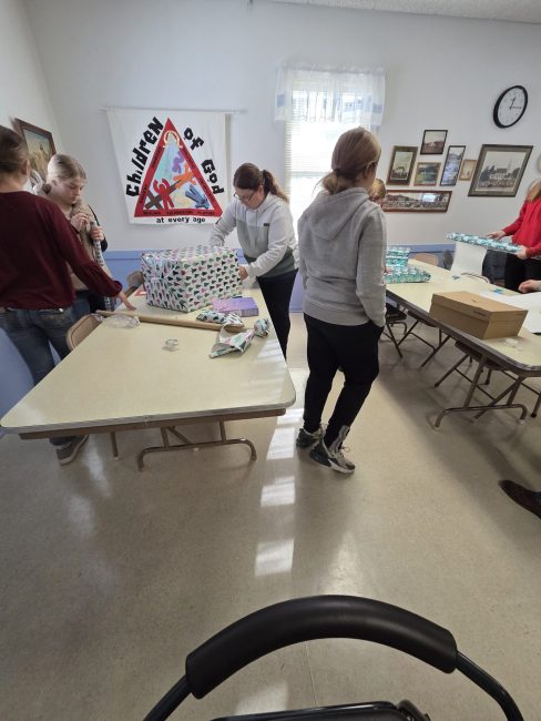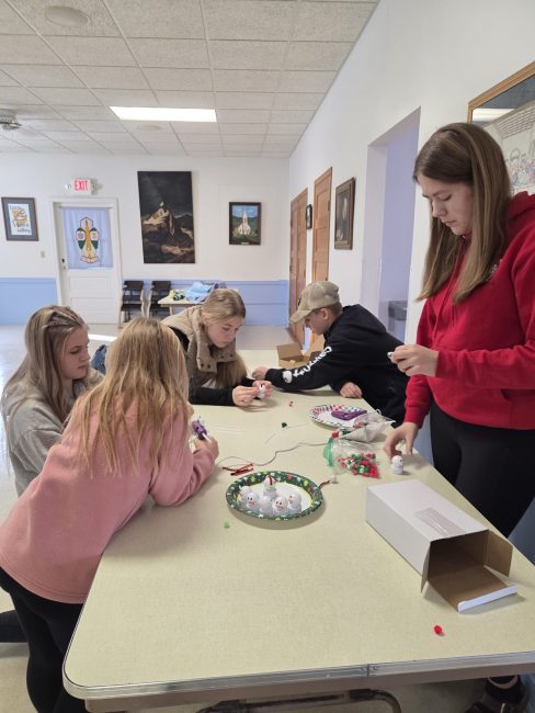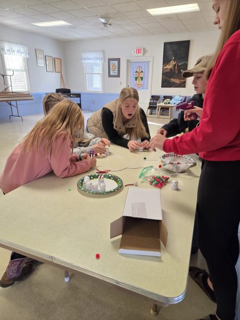 The Cheerful Workers 4-H Club met on Sunday, December 7 at 11:30 AM at the Lyster Parish Hall. We began with a warm lunch prepared by the families in attendance — hot soup, sandwiches, dessert, and a few extra fixings gave us energy on a cold day as we got to work.