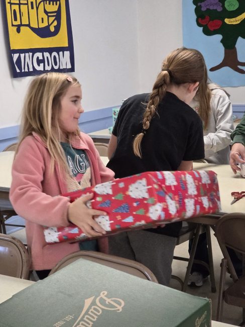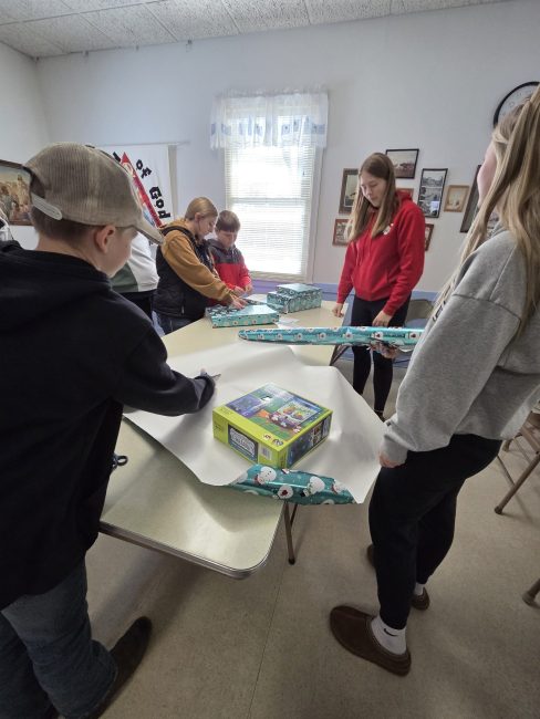 We had four Wish Tags from Alliance Bank. Our families pitched in to buy gifts from each child’s wish list, and we got them all wrapped and ready for delivery. New this year was a tag we took for a Family Activity Box; we used the $50 VISA card we received as a reward for our community service during 4-H Week to purchase it — we were happy to do so!