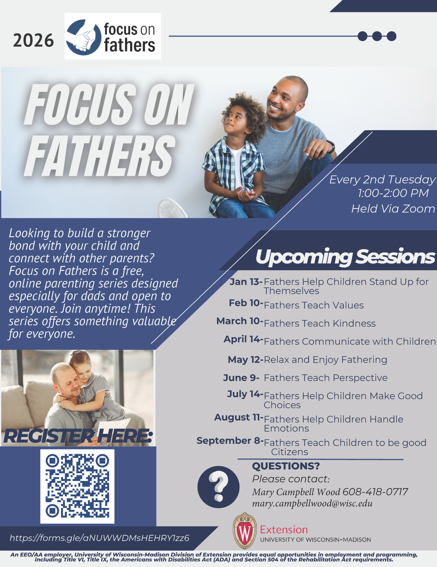 Looking to build a stronger bond with your child and connect with other parents? This free online monthly parenting series is designed especially for anyone in a fathering role (dads, step-dads, grandfathers, etc.) and is open to everyone. The classes offer something valuable for everyone
