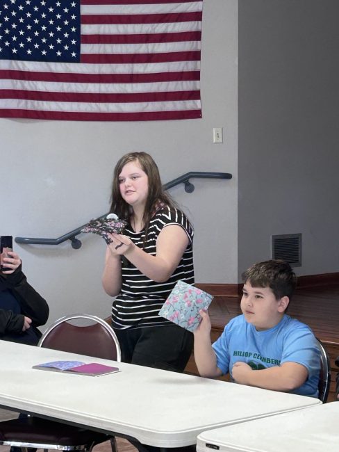 Hilltop Climbers 4-H Club met in February. At the meeting, several upcoming events were discussed to help members prepare to show animals at the fair. Azalya Hurlburt demonstrated how to make an origami dragon. Several members practiced making cookies or bars at home, which they might take to the fair this summer. Members brought in a dozen cookies to put in boxes to deliver to businesses in town that help out with 4-H. Each member also got to decorate a heart cookie and eat it. Finally, members who wanted to make their own pizza took it home to cook and enjoy with their family. The next meeting is in April.