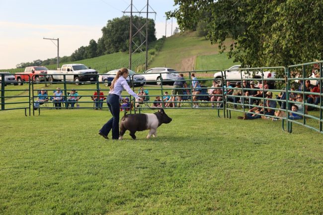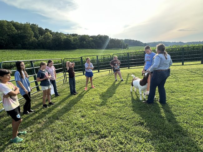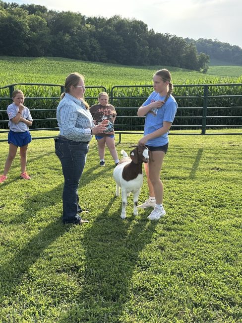 Over 50 youth along with their families from Buffalo, Pepin, and Pierce counties attended the Livestock Showmanship Clinic that was held at the George Family Farm near Mondovi on the evening of Sunday, July 20, 2025. The interactive workshop taught youth basic showmanship skills and techniques for showing beef, sheep, swine and goats. Youth leader Alison George taught and led the workshop demonstrating proper attire, showmanship techniques and handling of the animals. Attendees learned tips on preparing their animals for the fair. The highlight of many youth who attended was the hands-on practice of the skills that were taught with the different animals at the workshop. Thank you to Alison George, Kaylen Rud, Karissa O’Connell and the George family for sharing their talents to make this event a success.