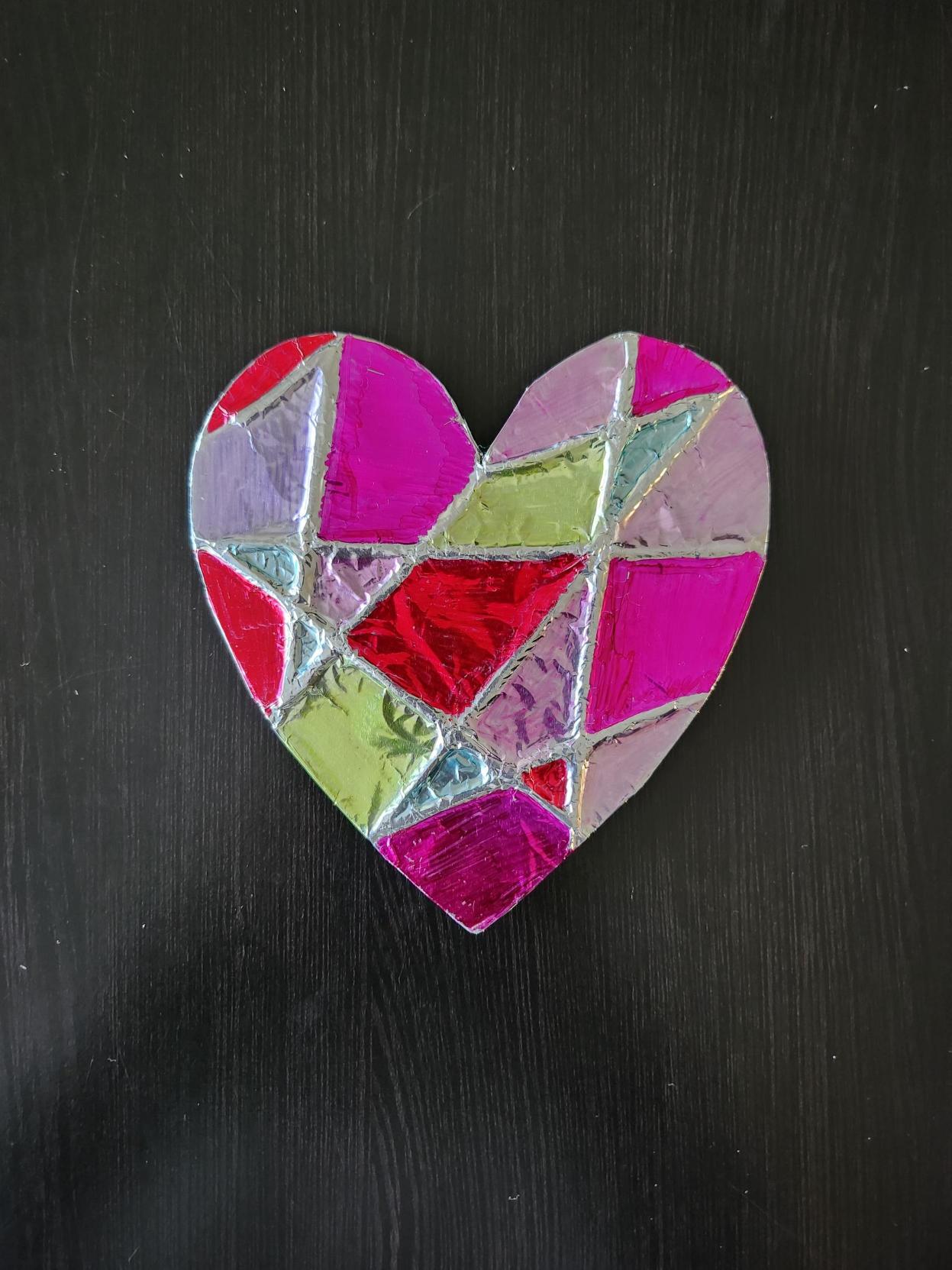 - Cut a piece of aluminum foil large enough to cover the front of the heart.