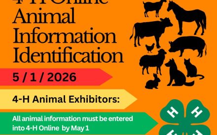 ATTENTION – 4-H Members planning to exhibit animals at the 2026 Buffalo in affiliation with Pepin County Fair. Animal identification information must be entered into 4-H Online by May 1st.