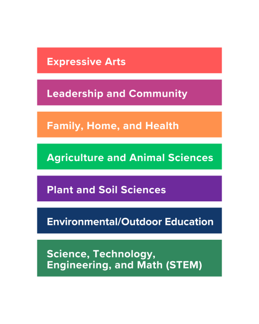 Project areas are specific areas of interest for 4-H members and volunteers. Youth may explore a project on their own, or several members interested in the same subject or topic can form a project group. Sign up for the project areas you want in your 4-H Online enrollment. There are 7 project areas to choose from.